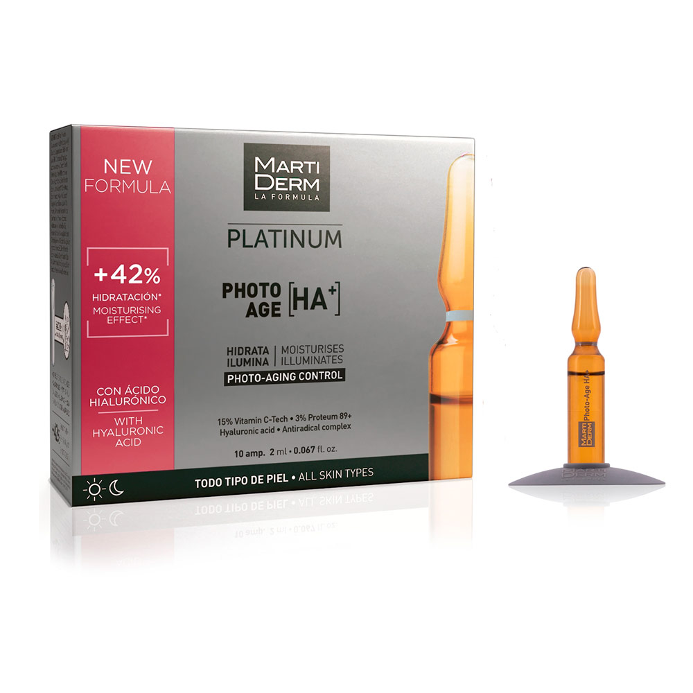 Nueva versión súper hidratante de las ampolletas Photo-Age. Es el resultado de la sinergia entre la Vitamina C, Proteum 89+ y, ahora, el Ácido Hialurónico. Se trata de una ampolleta de fácil absorción que hidrata e ilumina la piel, además de suavizar la apariencia de las arrugas logrando un rostro más firme.